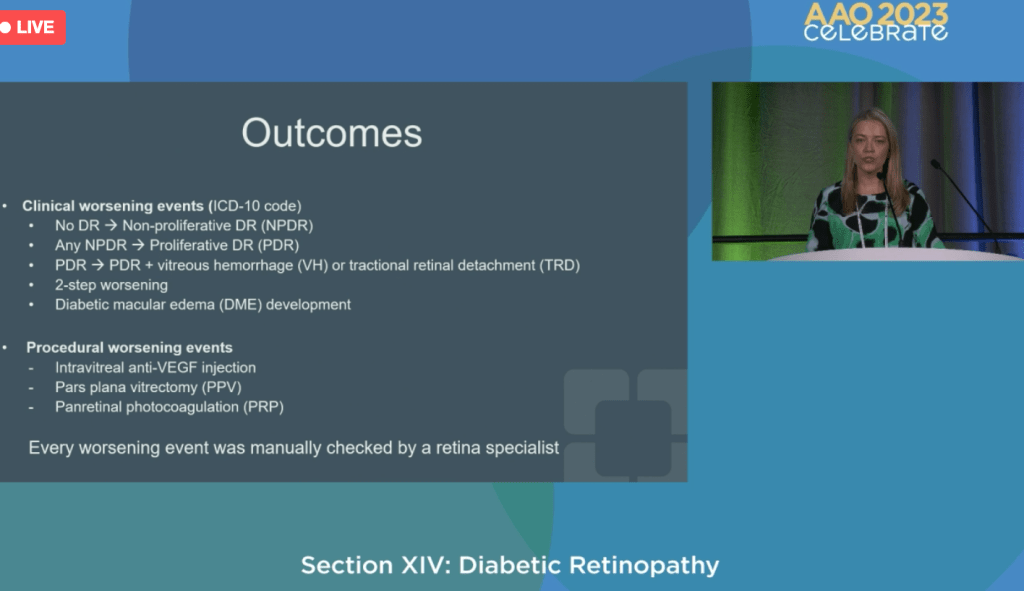 The second day of retina sub day at AAO 2023 included talks on the increasingly popular glucagon-like peptide (GLP-1) agonists such as semaglutide (Ozempic), dulaglutide (Trulicity), and liraglutide (Saxenda). Dr. Aleksandra Rachitskaya highlighted the interest in the potential relationship between the GLP-1 agonist medications and diabetic retinopathy (DR). Large studies, such as REWIND and LEADER, examined cardiovascular outcomes among patients with diabetes receiving GLP-1 agonists. They also reported that they found no association between GLP-1 agonists and DR progression. SUSTAIN 6, another large study, reported a higher risk of DR progression than placebo. These large studies primarily examined cardiovascular outcomes, not DR. Dr Rachitskaya also points out that the studies had inconsistent and limited documentation of DR staging, so she and her team sought to explicitly study the relationship between the medications and DR. She notes endocrinologists may express concern and seek ophthalmology guidance regarding the appropriateness of GLP-1 agonists in patients with known DR given these reports.