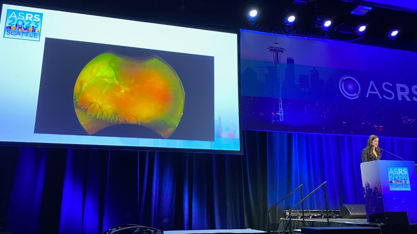 Dr. Mallika Goyal, MD, showed a series of cases using fibrin glue to close retinal breaks in combined tractional (TRD) and rhegmatogenous retinal detachments (RRD). In this series, iatrogenic breaks occurred while repairing the TRD. After fluid-air exchange (FAX), fibrin glue (Tisseel) was placed over each of the breaks – thick then thin followed by silicone oil. Post-operative OCT demonstrated resorption of the fibrin glue after <7 days. In her hands, so far, there have been no issues with inflammation at 10 months postoperatively.