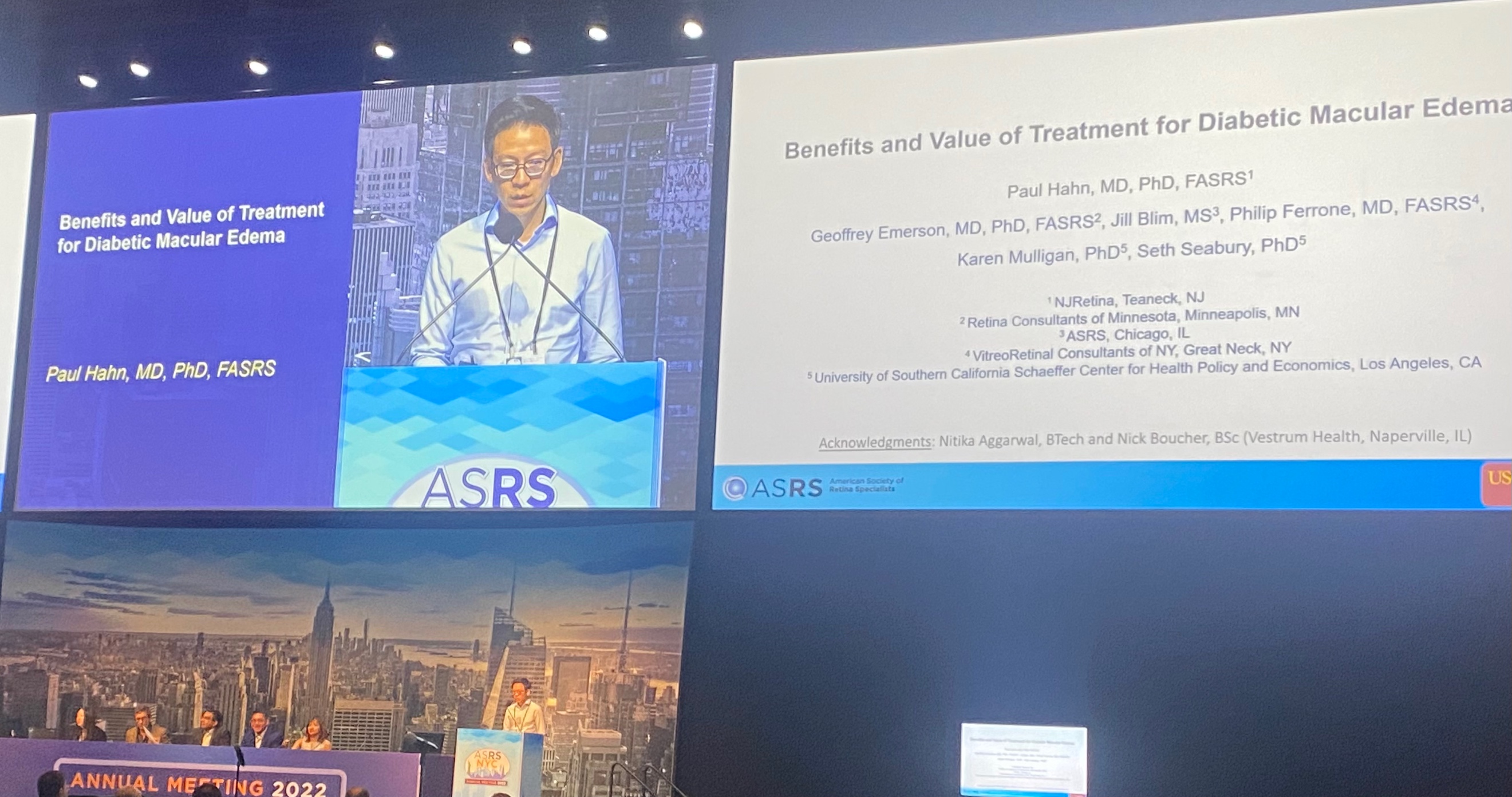 The final day of presentations from ASRS featured a new set of exciting lectures. In the Diabetic Retinopathy session, moderated by Francesco Boscia and Jennifer Sun, Dr. Paul Hahn from NJ retina presented his work titled Benefits and Value of Treatment for Macular Edema.
