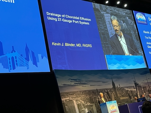 Case 3: Dr. Kevin Blinder from The Retina Institute presented a case of an elderly man with recurrent, appositional serous choroidal detachment in the right eye after a glaucoma tube shunt. Drainage was performed using a 27 gauge cannula with anterior placement, just behind iris, allowing for drainage of serous fluid. Direct visualization showed excellent improvement in the choroidal detachment. Dr. Blinder highlighted the value of this minimally invasive method of choroidal drainage.