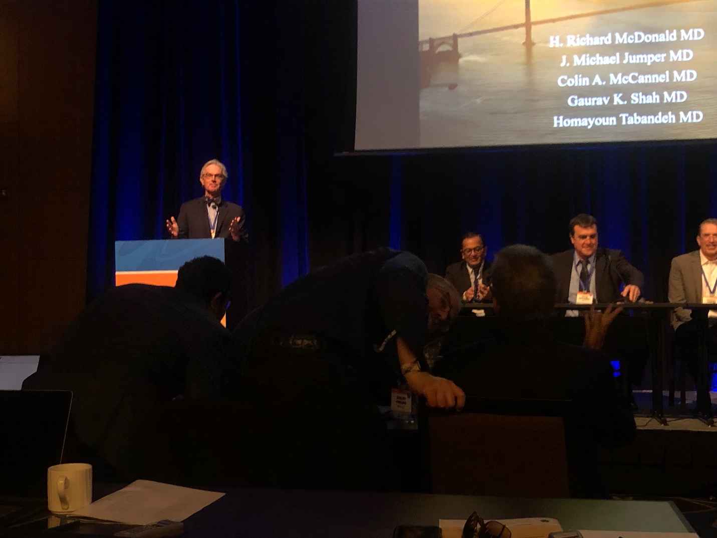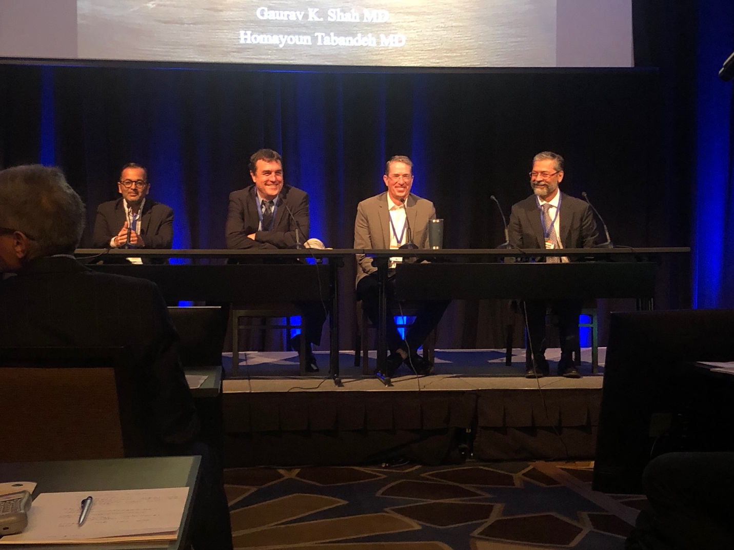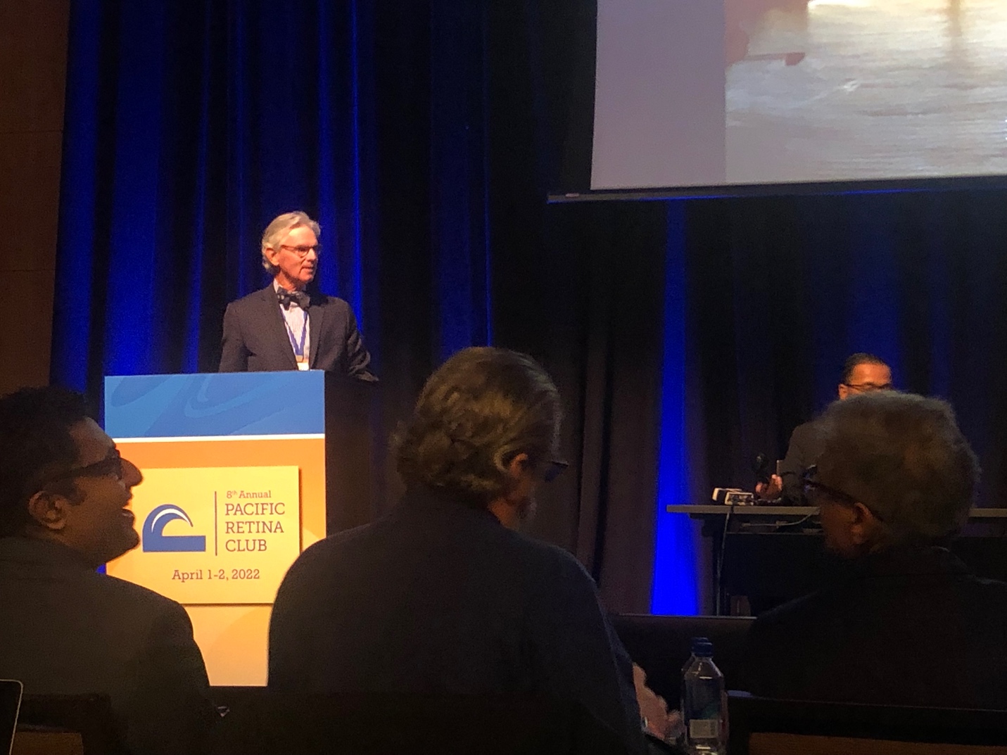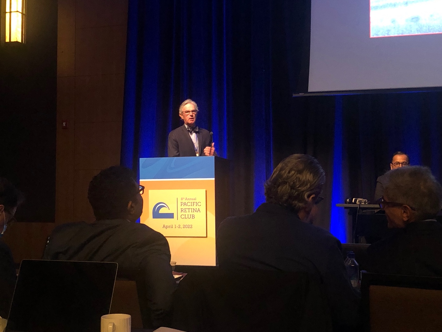 Another macula-sparing RRD with a superior horseshoe tear and lattice degeneration was shown, and Dr. Jumper agreed with Dr. Tabandeh that his first preferred treatment was with pneumatic retinopexy. He was shown a photo of “fish eggs” after a pneumatic retinopexy and was asked the best method of preventing this from happening, for which he reinforced the importance of injecting into the bubble, and if fish eggs happen, the eye can be gently (or not so gently!) thumped to allow the bubbles to coalesce.