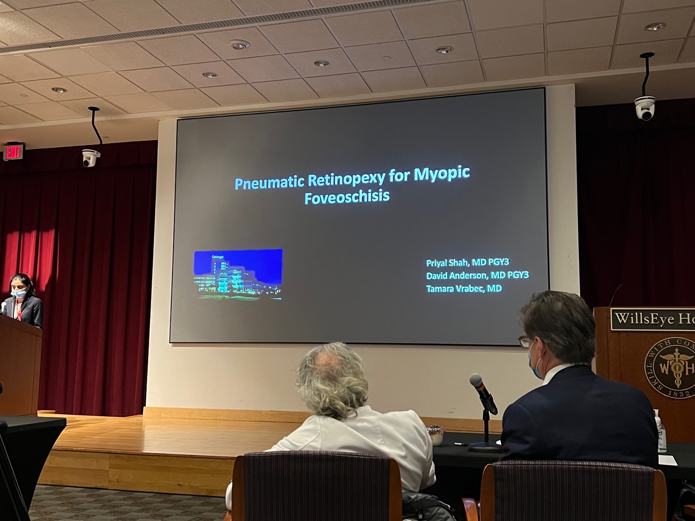 Next, Dr. Hermann Schubert presented a case of a patient with a giant retinal tear who was treated with laser retinopexy and gravitational positioning with no surgical intervention. He shared the history of treating retinal pathology with bilateral patching, and its continued utility today in patients who are not amenable to procedural/surgical intervention, especially with formed vitreous.
