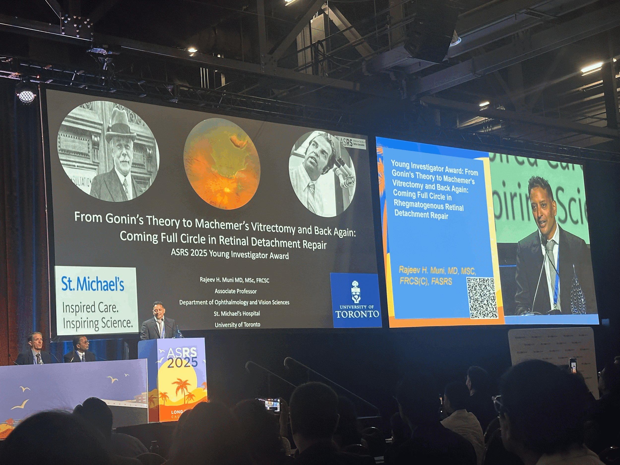 In his lecture, Dr. Muni discussed a new technique, suprachoroidal viscopexy, a minimally invasive, in-office method for detachment repair that avoids gas, preserves photoreceptor integrity, and aligns with modern expectations of retinal healing. His closing challenge to surgeons asked: “Is single-operation reattachment enough? Or should we aim for more?”