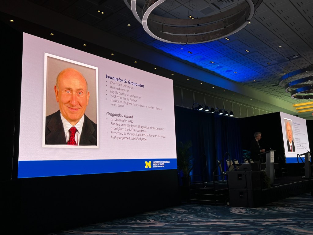 I am very humbled to be selected by the Macula Society for the Gragoudas Award and I want to express my sincere gratitude to the selection committee and Dr. Gragoudas for this honor. I’m so grateful to my mentor, Dr. Rajesh C. Rao, for his guidance and support on this project, and to the Kellogg Eye Center Retina Department, led by Dr. Mark Johnson, for their nomination, mentorship and support throughout my training.