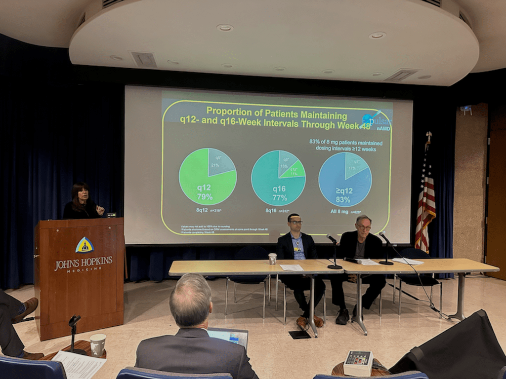 Dr. Susan Bressler presented on durability versus superiority of novel agents in the treatment of neovascular AMD. She highlighted features of the study treatment protocols in TENAYA and LUCERNE as well as PULSAR which she argued may not necessarily reflect real-world treat and extend protocols, and which would tend to highlight the durability of faricimab and aflibercept 8mg, respectively, over aflibercept 2mg. She called for systematic head-to-head comparison of faricimab and aflibercept 8mg with protocols that allow for greater individual practitioner discretion.