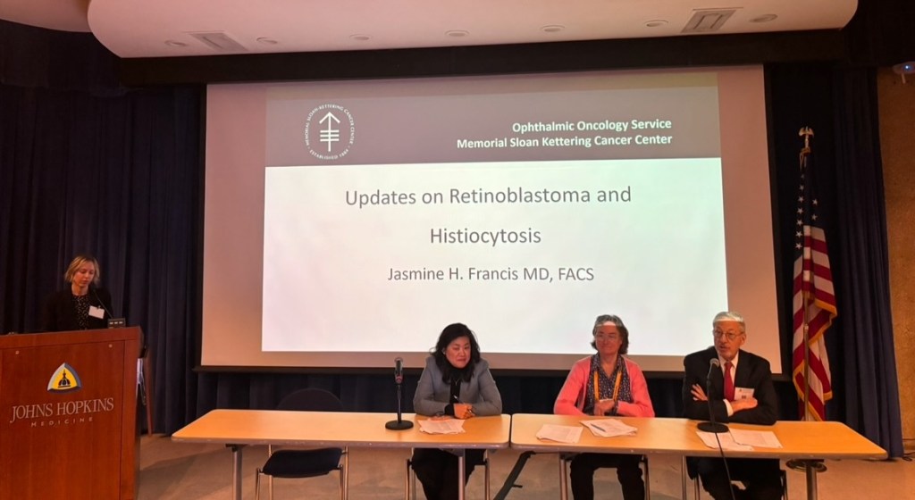 Dr. Jasmine Francis then gave a talk entitled, “Updates on Retinoblastoma and Histiocytosis.” She began by highlighting the symptoms of ocular histiocytosis and how traditional biopsy can be difficult due to risks inherent in biopsy of the brain/eye and scant histiocytes present. However, studies of cell free DNA (cfDNA) in the blood have shown how cfDNA can be used to establish the diagnosis and bypass limitations associated with biopsy. Another advantage of cfDNA is that is can be used to determine the mutational profile to best develop a treatment plan.