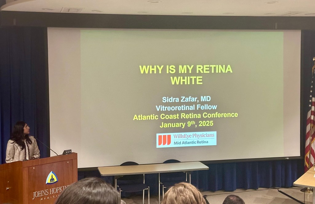 Dr. Sidra Zafar, a vitreoretinal fellow from Wills Eye Hospital, presented an atypical case of bilateral primary vitreoretinal lymphoma initially misdiagnosed as viral retinitis. The patient had negative vitreous biopsies in both eyes and was MYD88-negative. The diagnosis was ultimately confirmed through a retinal biopsy, which revealed pathology consistent with diffuse large B-cell lymphoma. The patient was treated with intravitreal methotrexate, leading to improvement. Dr. Zafar also shared the surgical video of the biopsy.