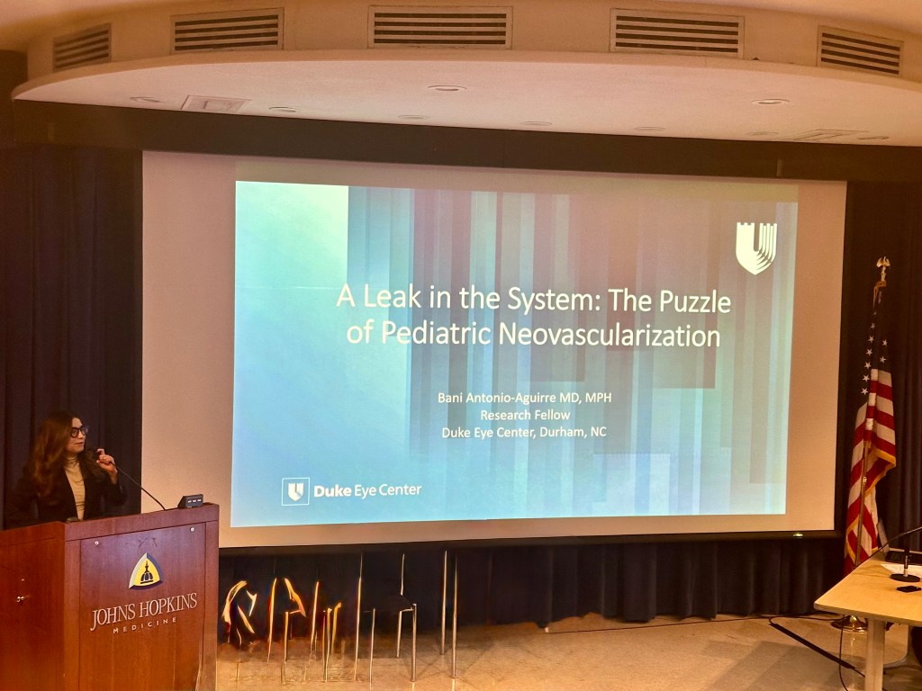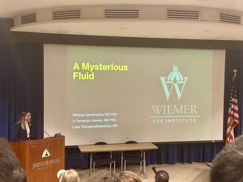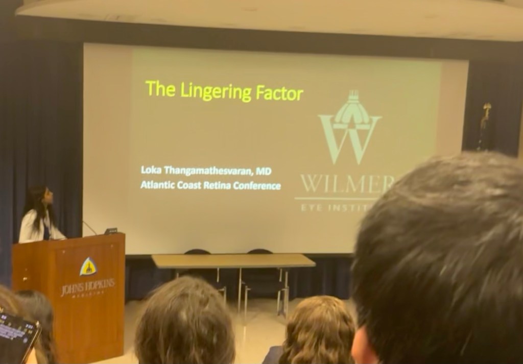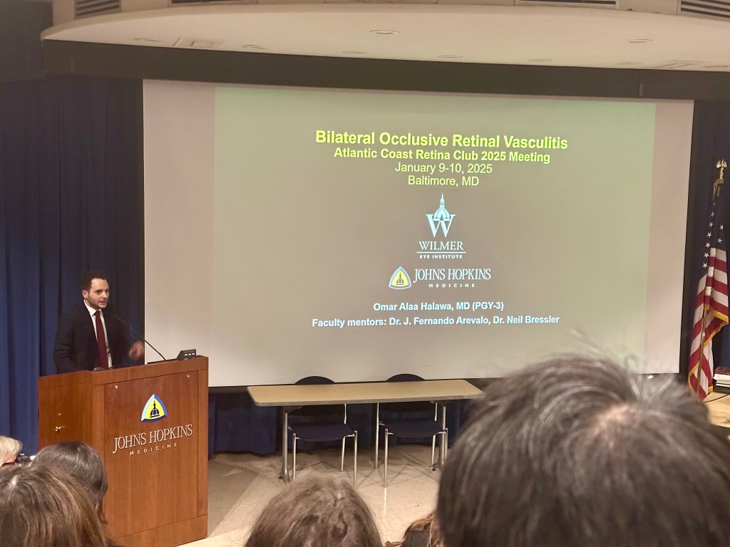 Dr. Omar Halawa from Wilmer first presented a complex case of teenage boy who presented with diffuse cotton wool spots and scattered intraretinal hemorrhages in both eyes associated with arthralgias and skin rash. Fluorescein angiography showed perivascular leakage with peripheral non-perfusion. The patient was diagnosed with bilateral occlusive vasculitis secondary to systemic lupus erythematous prompting inpatient admission for treatment with IV steroids. He was also started on hydroxychloroquine and mycophenolate mofetil. Despite medical treatment, the patient developed worsening non-perfusion neccesiting treatment with PRP and rituximab infusions. He was also started on anticoagulation. His clinical course was later complicated by a non-clearing vitreous hemorrhage for which a PPV was done. On his last follow-up visit, the patient’s visual acuity had improved, and his disease course had stablized.