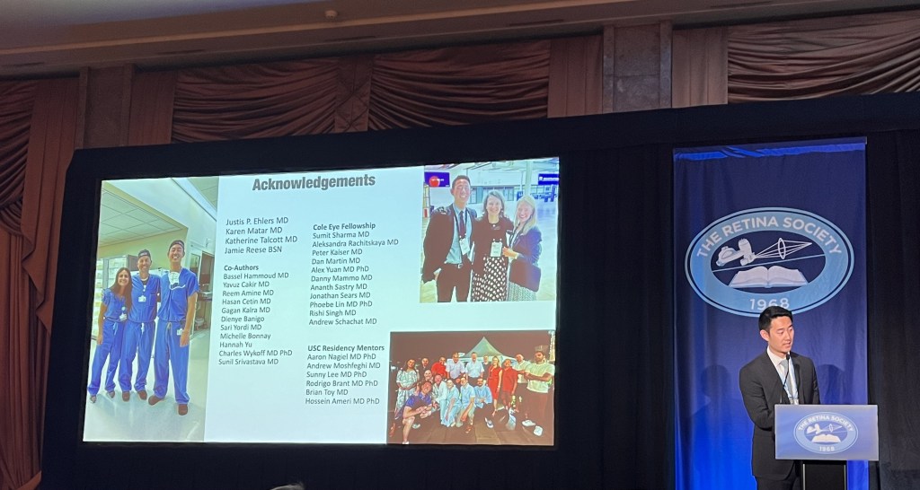 Eric Jung was awarded the Fellowship Research Award for his work entitled Spontaneous Drusen Reduction Volume is Associated With Persistent Ellipsoid Zone Integrity Alterations in Intermediate Age-Related Macular Degeneration. Dr. Jung completed his medical school and residency at the University of Southern California and Roski Eye Institute and is currently a fellow at the Cole Eye Institute in Cleveland, Ohio.
