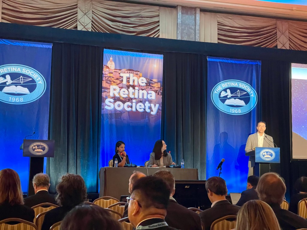 Dr. David Brown opened with his talk, entitled “Next Generation Anti-VEGF Agents — Is Twelve Weeks the New Norm?” quipping that “spoiler alert – not for everyone”. He discussed that various factors determine drug clearance including axial length, vitreous syneresis and anti-drug antibodies, and that aqueous and plasma concentrations of anti-VEGF agents can vary significantly among patients. Since drug injection frequency is directly correlated to drug clearance and the presence of anti-drug antibodies, he concluded that while the longer dosing interval may be possible with longer drug clearance time, some patients may require more frequent dosing even with next-generation agents.