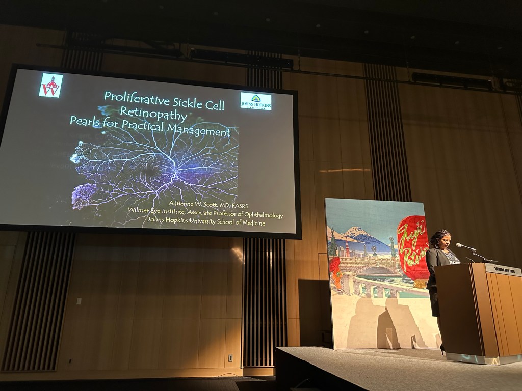 In her second talk, Dr. Scott focused on advancements in sickle cell retinopathy management, highlighting the classification system introduced by Dr. Goldberg in 1971 that remains in use today. This system identifies stages of vascular remodeling in the retinal periphery, notably starting with peripheral arterial occlusions and progressing through stages that include the development of sea fan-shaped vascular formations. Sickle cell retinopathy, which varies in severity among different genotypes of the disease, shows a higher prevalence in the hemoglobin SC genotype. This condition primarily affects adolescents and young adults and is characterized by a unique occurrence where up to 40% of sea fan neovascular formations may spontaneously regress without leading to vision loss. The presentation also covered the challenges in screening and treatment for sickle cell retinopathy, including the timing and choice of therapeutic interventions like laser therapy and anti-VEGF treatments. Despite a lack of consensus on treatment strategies, laser photocoagulation remains a primary option, significantly reducing the risk of vitreous hemorrhage without preventing new sea fan formation. Dr. Scott highlighted case studies indicating that VEGF is released not just from areas of non-perfusion but also from zones transitioning between perfused and non-perfused regions. This research suggested that laser treatments should target these transitional zones where VEGF concentrations are highest. Dr. Scott concluded by emphasizing the importance of personalized treatment approaches, including the use of anti-VEGF therapy and surgery in advanced cases, to improve outcomes for patients with sickle cell retinopathy. Her presentation emphasized the intricate nature of treating sickle cell retinopathy and the ongoing need for research to refine therapeutic strategies.
