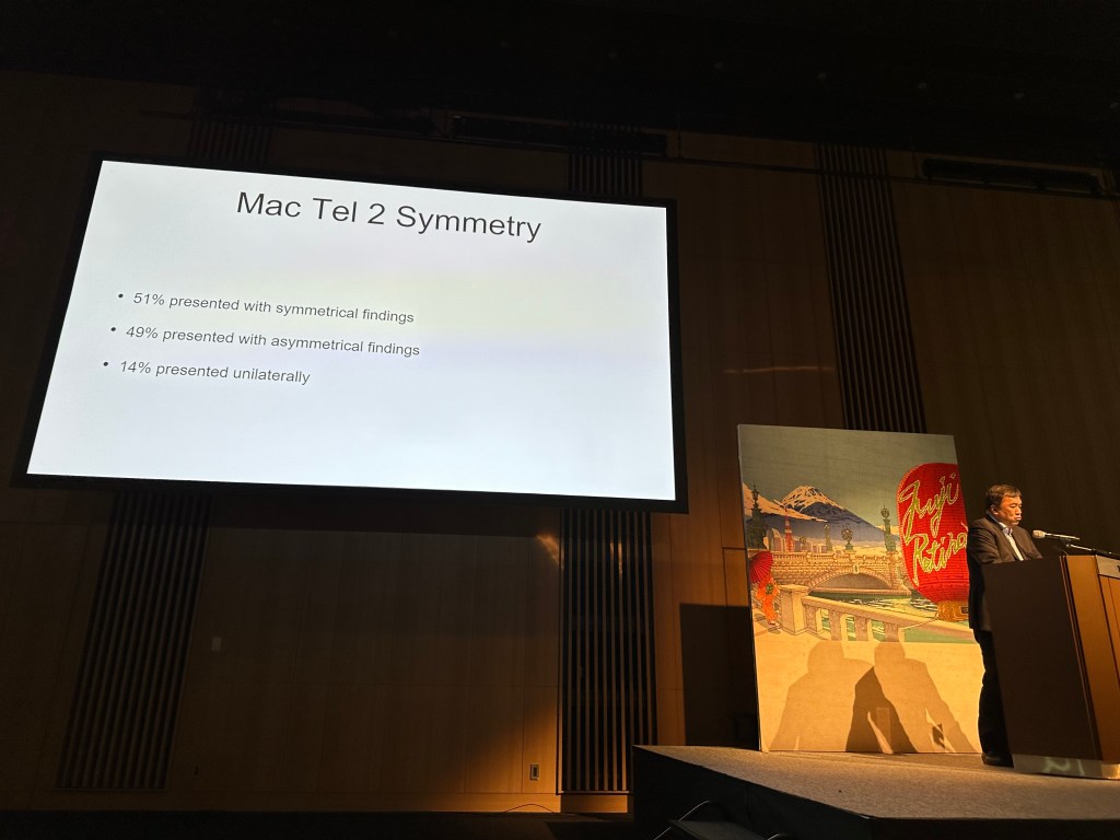 Dr. Lihteh Wu from Asociados de Macula, Vitreo y Retina de Costa Rica presented his findings on “Multimodal imaging in macular telangiectasia 2,” focusing on a cohort study from Latin America. The study encompassed 182 patients, predominantly female (mean age 62, range 25 to 80), shedding light on the varied presentations and multimodal imaging findings associated with MacTel type 2. The patients in the study displayed a wide range of visual acuities and findings from multimodal imaging, such as changes in pigment, fluorescence, hyperreflectivity, shadows on the retina, and flow mapping seen through various imaging techniques. Particular focus was placed on the absence of normal luteal hyporeflectance and the detection of features like cavitations in the inner and outer layers of the retina, crystals, expanded blood vessels, and increased fluorescence. Among the most significant clinical observations were the expanded retinal blood vessels, with abnormalities in fundus autofluorescence being one of the earliest signs identified. The research illustrated how the disease’s stage, based on the classification by Chew et al.,3 correlates with visual acuity. Additionally, the study investigated whether the disease manifested symmetrically in both eyes of the patients, discovering that 51% of the cases showed no difference in disease stage between the two eyes, indicating symmetry. The remaining cases either exhibited asymmetrical stages of the disease across the two eyes or showed no signs of the disease.