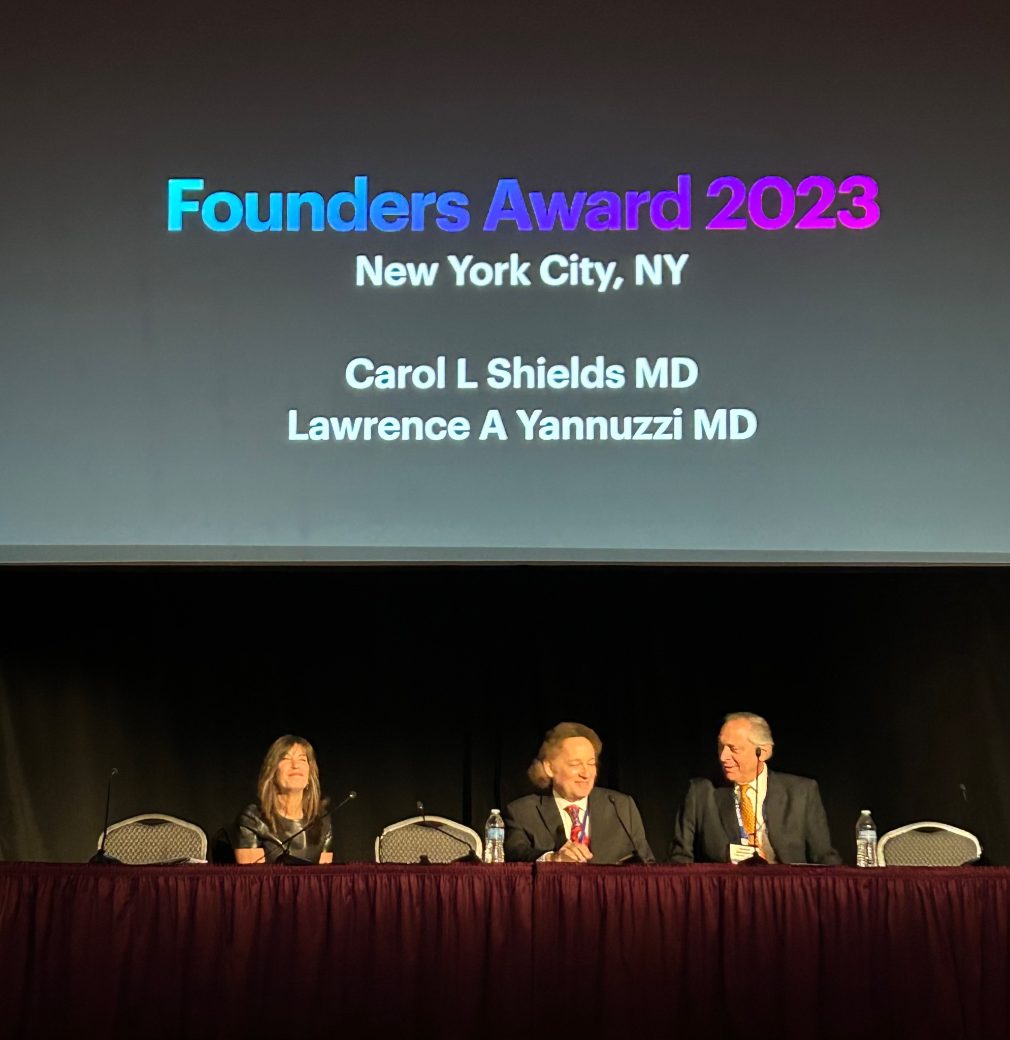 Dr. Carol Shields and Dr. Lawrence Yannuzzi presented the honorary Founders Award to three distinguished guests: Dr. Susan Bressler (Johns Hopkins Wilmer Eye Institute), Dr. Alexander Brucker (Penn Medicine Scheie Eye Institute), and Dr. Richard Rosen (New York Eye and Ear Infirmary).