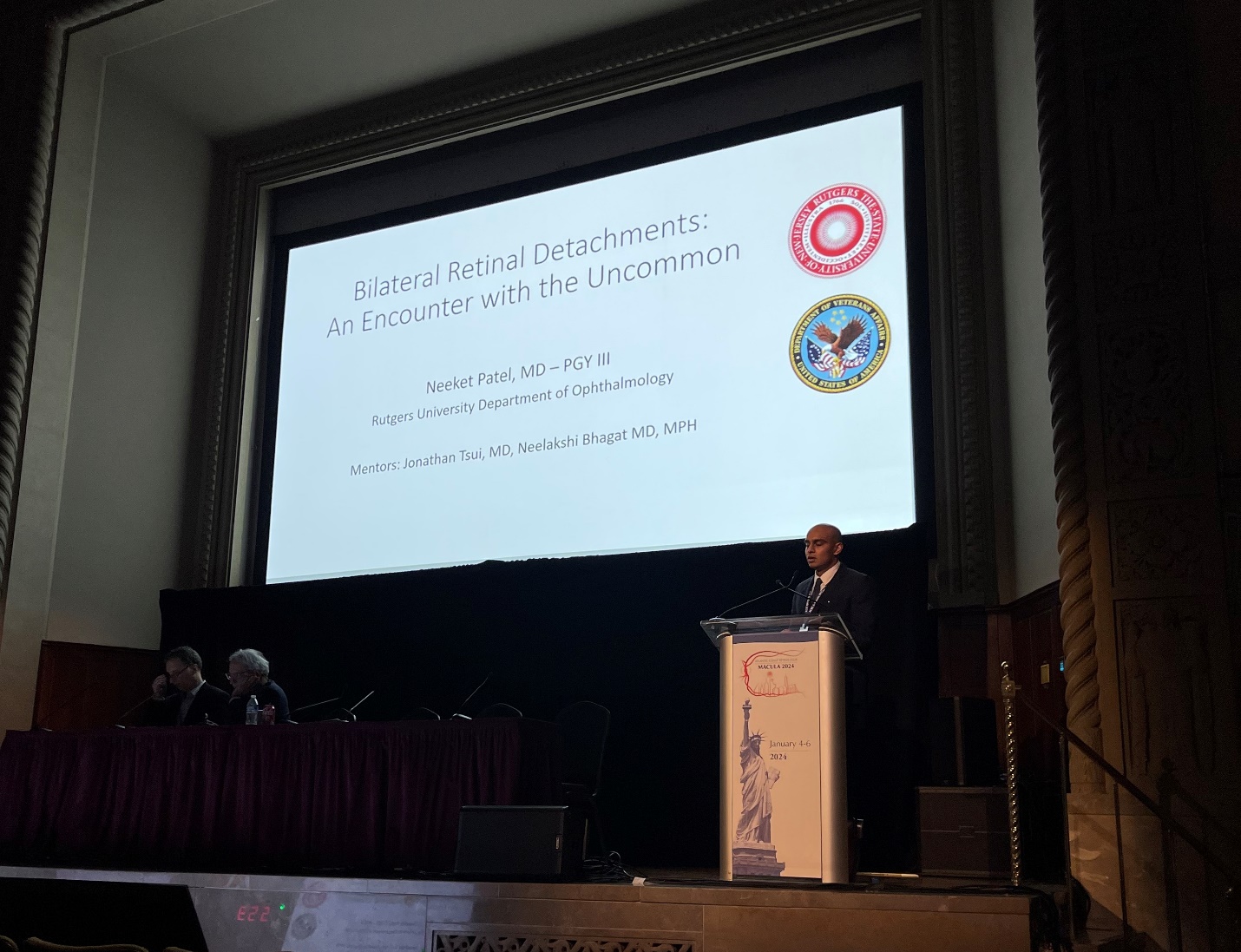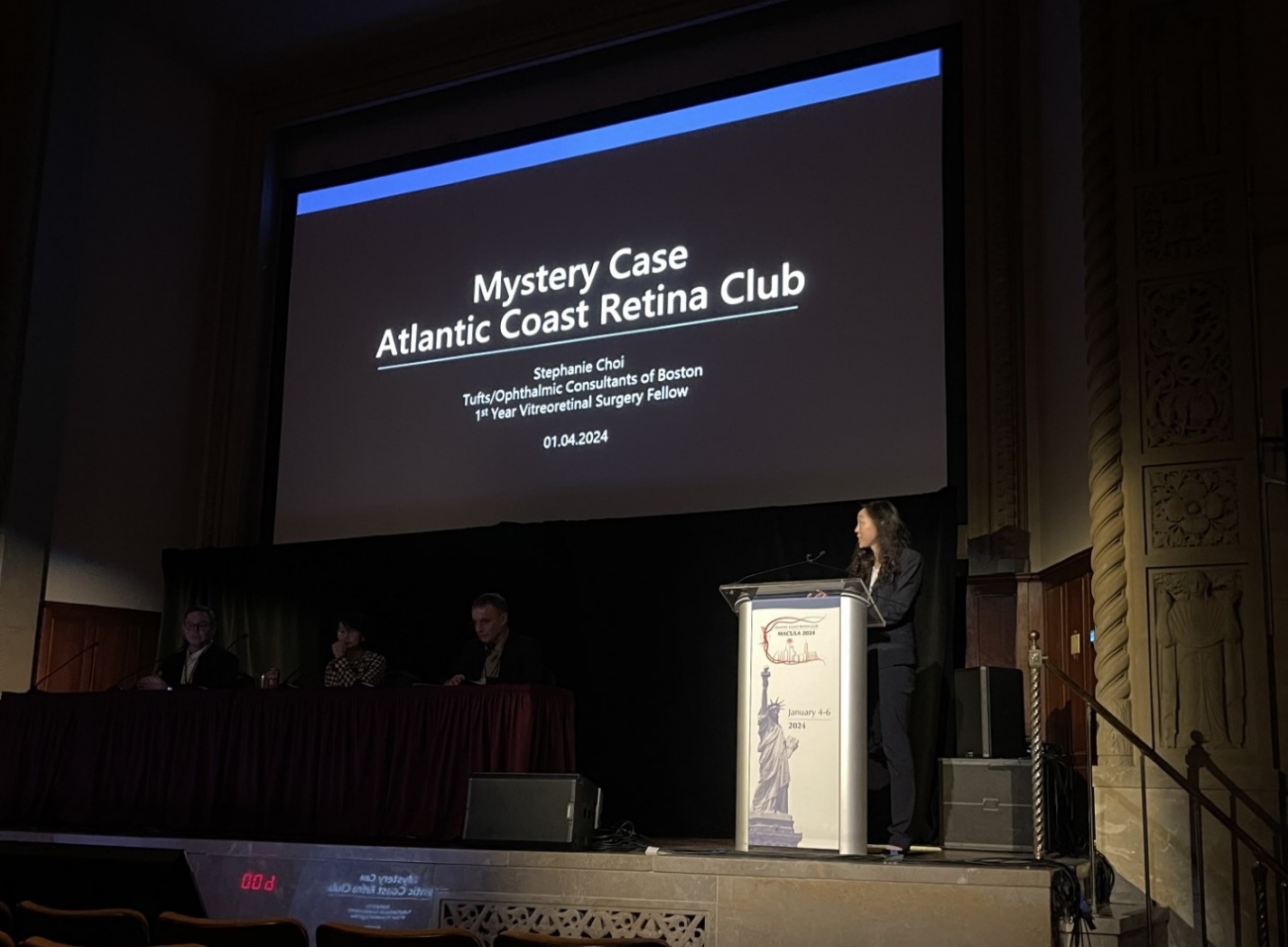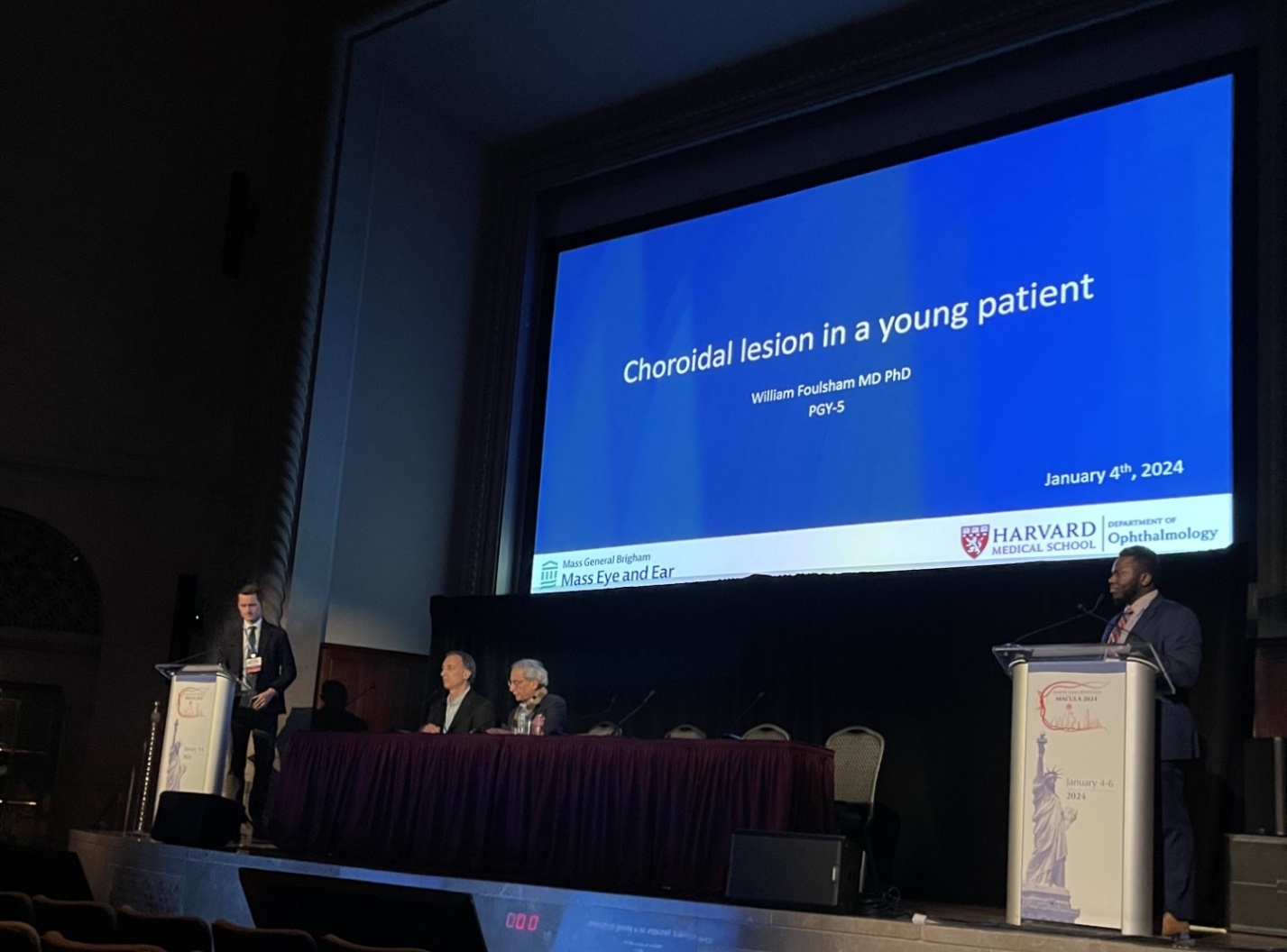 Dr. Jennifer Adeghate (Columbia/MEETH) presented on outer retinal changes in a patient who ended up having mutations in both PRPH and ABCA4, which has only been reported once. Dr. William Foulsham (Mass Eye and Ear) finished up the session with a mystery case of a choroidal mass associated with unilateral scleral icterus which ended up being a spontaneous suprachoroidal hemorrhage in the setting of severe hypertension.