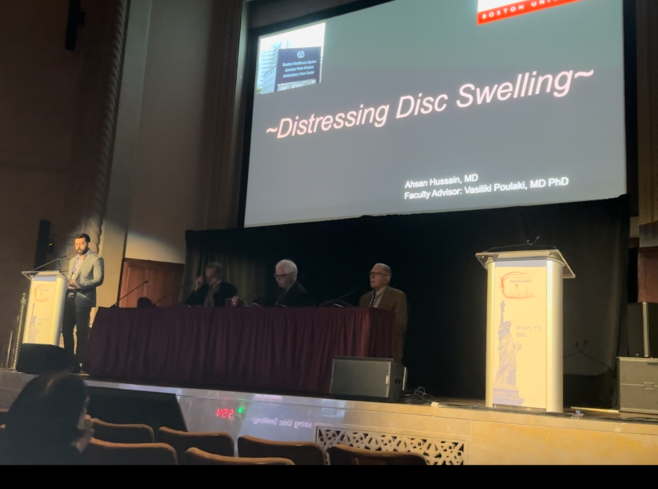 This was followed by Dr. Jeanette Du, a fellow from the Retina Group of Washington, who shared a case of rifabutin associated uveitis. She and the panelists emphasized that the associated segmental retinal arteritis is a nonspecific finding that can also be seen in other uveitic entities. Last but not the least, Dr. Ahsan Hussain, a fellow from Boston University, presented a case of Bing-Neel syndrome, a rare presentation of Waldenstorm’s macroglobulinemia presenting as unilateral disc edema and optic nerve enhancement.